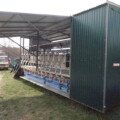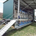 Μεταφερόμενο αμελκτήριο 12/12, αποτελούμενο από αυτόματο σύστημα τροφοδοσίας, ανοξείδωτη χοάνη ταΐσματος, αυτόματες παγίδες εγκλωβισμού και κάγκελα πλευρικής εισόδου- εξόδου. Περιλαμβανόμενα: Κεντρικός ηλεκτρονικός παλμοδότης: Προγραμματίζετε εύκολα σύμφωνα με τις ανάγκες του κοπαδιού. Συλλέκτης νερού: Παρέχει απόλυτη σταθερότητα υποπίεσης. Μονάδα κενού: Λιπαινόμενη για μεγαλύτερη διάρκεια ζωής. Πλυντήριο με σύστημα Air Injector: Λαμβάνει αυτόματα απορρυπαντικό και οξύ από τα δοχεία. Καινοτόμα θήλαστρα ULTRAmilk: Για γρηγορότερο και απαλότερο άρμεγμα.